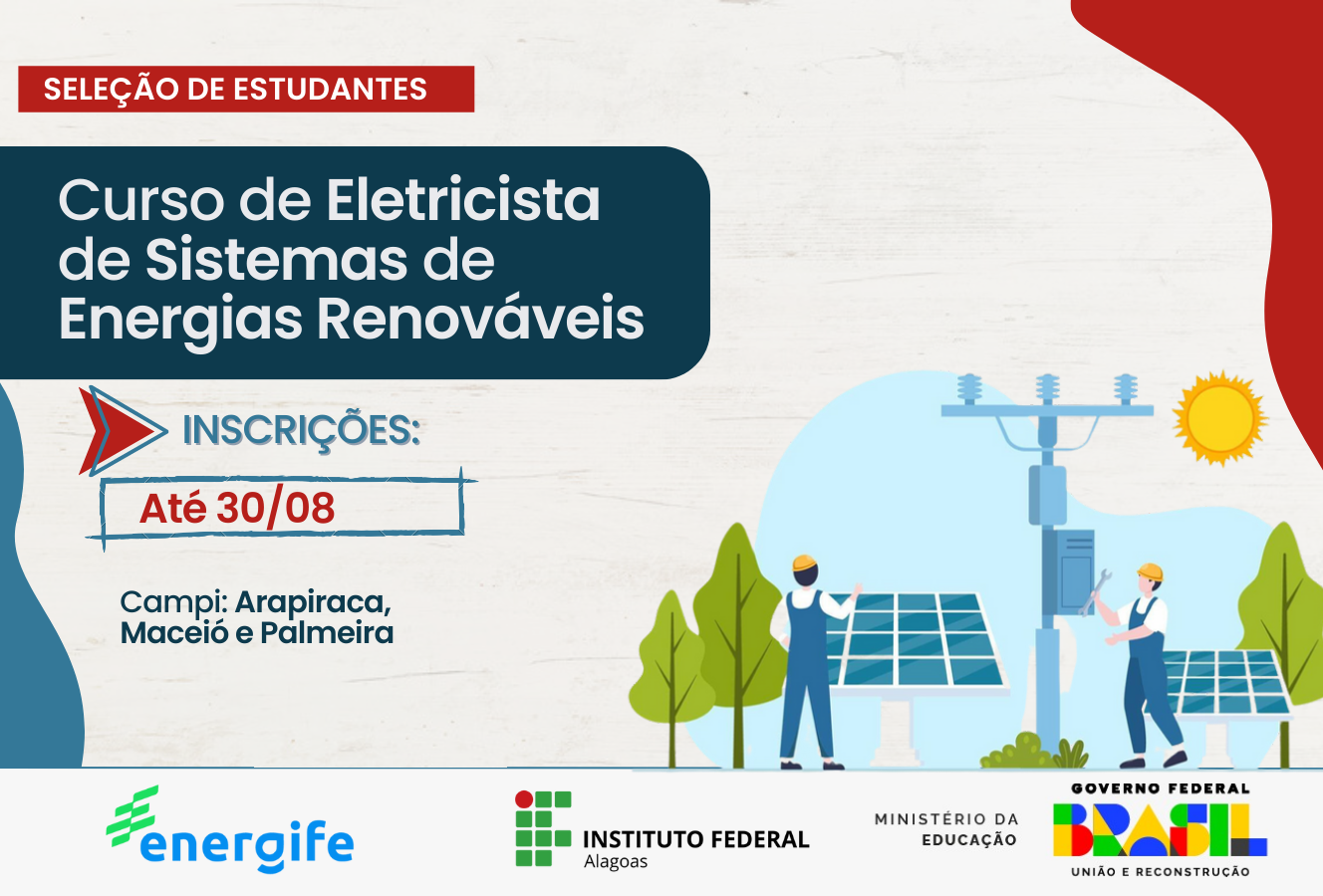 Abertas inscrições para curso de Qualificação Profissional de Eletricista de Sistemas de Energias Renováveis