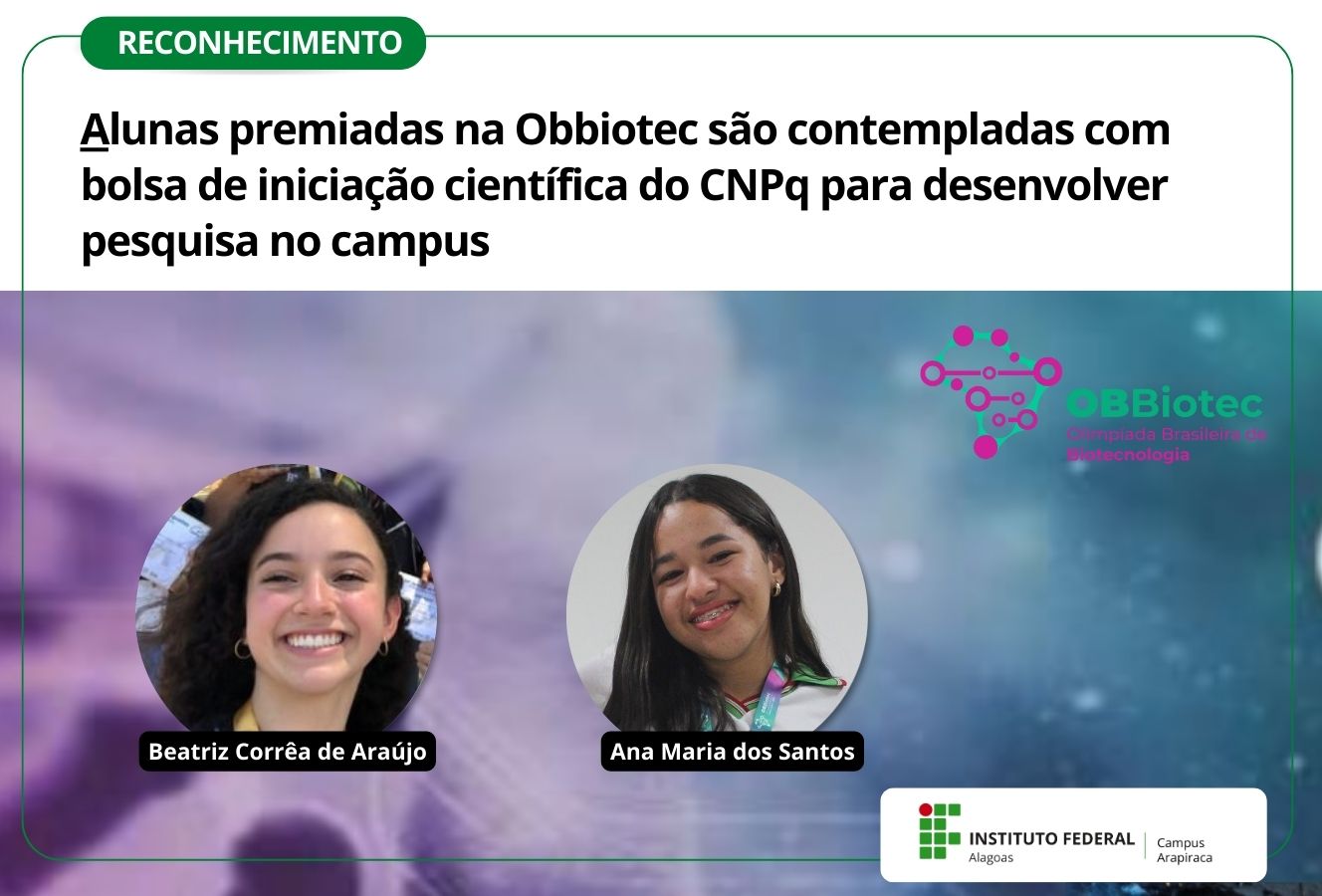 Alunas premiadas na Obbiotec são contempladas com bolsa de iniciação científica do CNPq para desenvolver pesquisa no campus