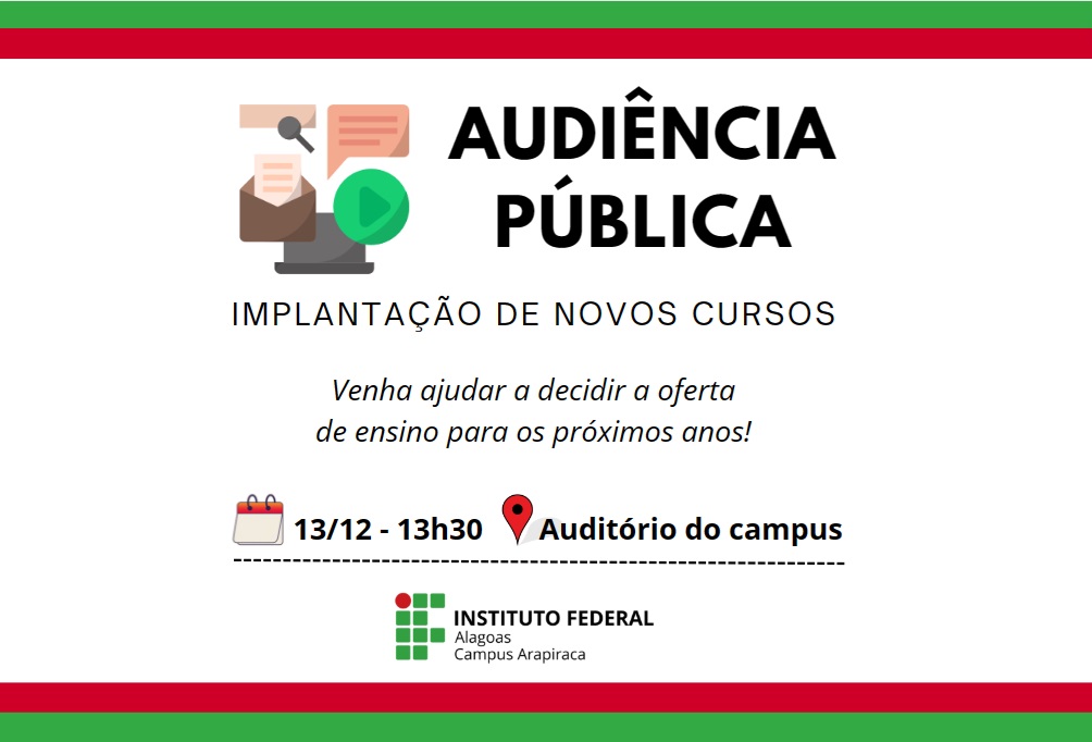 Audiência pública irá definir novos cursos do Ifal Arapiraca; compareça!