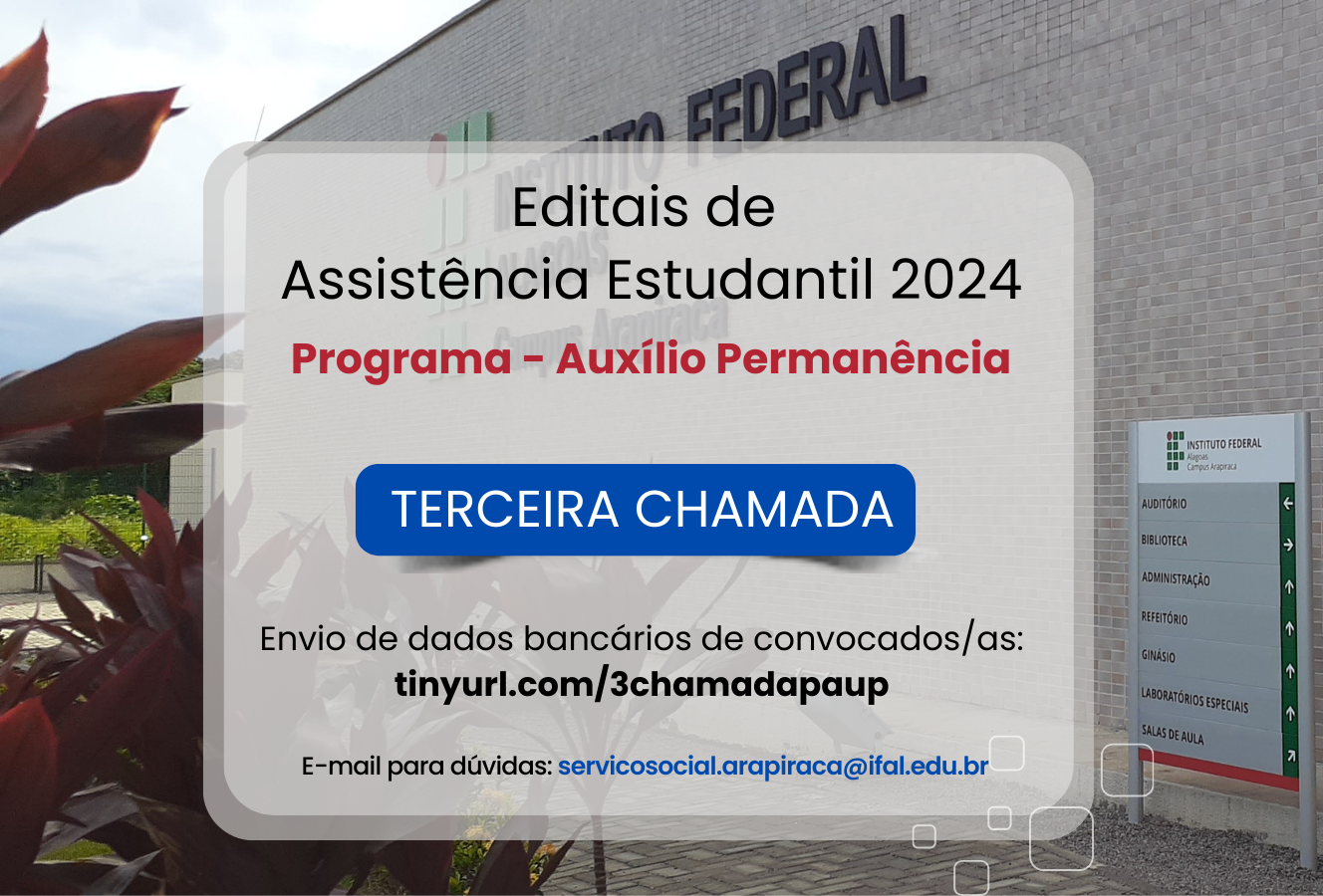 Auxílio Permanência do Ifal Arapiraca convoca mais 4 estudantes em 3ª chamada