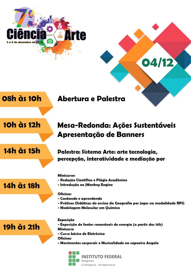 Ciência & Arte vai reunir produções científicas, artísticas e pedagógicas do Ifal Arapiraca