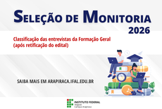 A Coordenação de Formação Geral do Instituto Federal de Alagoas - Ifal Campus Arapiraca divulgou, nesta quarta-feira (22), o resultado das entrevistas, após retificação do edital. ACESSE AQUI.