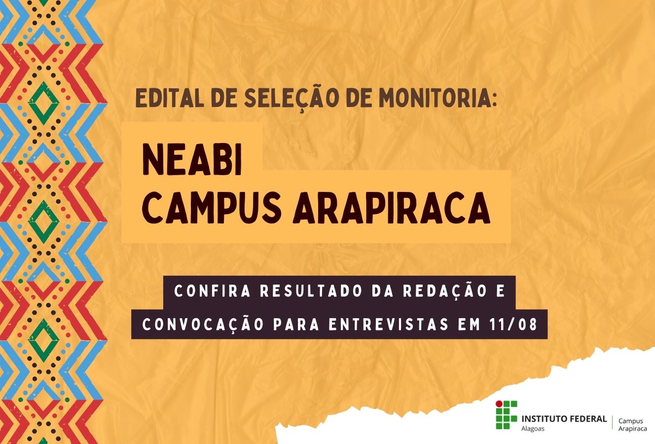 Divulgado resultado das provas de redação para a monitoria do Neabi Campus Arapiraca