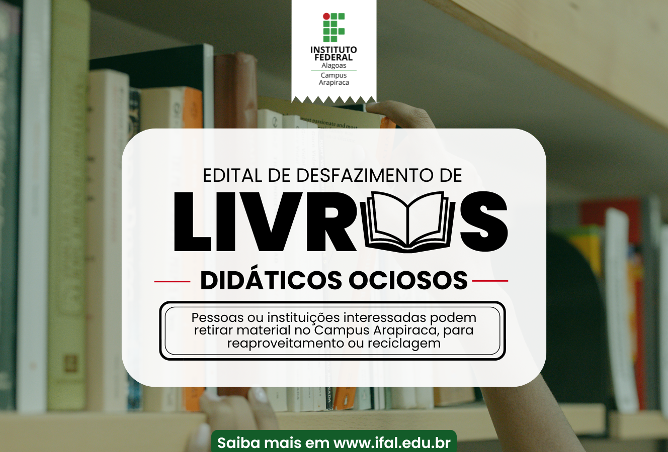 Edital de desfazimento de livros didáticos ociosos do Ifal Arapiraca prevê doação para pessoas ou instituições