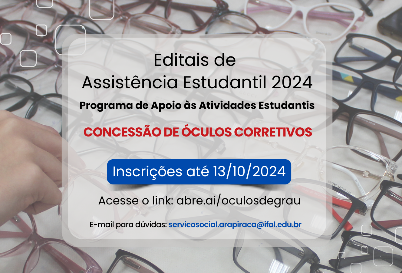 Edital que concede óculos corretivos está com inscrições abertas até 13/10