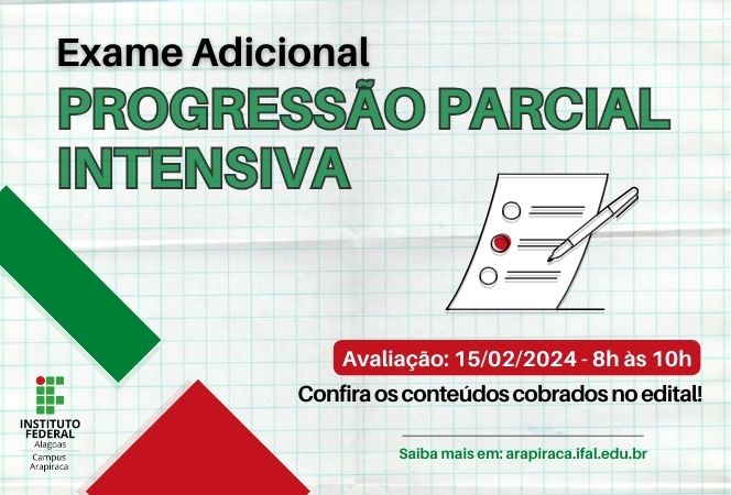 Exame Adicional para Progressão Parcial no Ifal Arapiraca será dia 15/02; veja edital retificado
