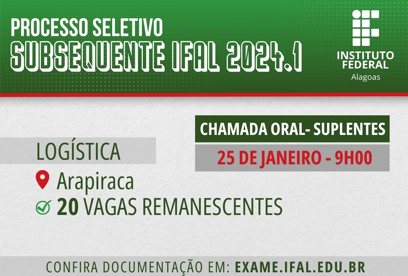 Ifal Arapiraca convoca suplentes para chamada oral de vagas remanescentes em Logística nesta quinta-feira (25)