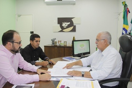 Rogério Teófilo em reunião com o diretor-geral do campus, Fábio Ribeiro, e o coordenador de Extensão, Marcos Nunes
