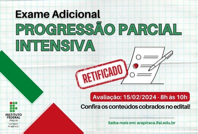 Ifal Arapiraca divulga nova retificação do Exame Adicional para Progressão Parcial