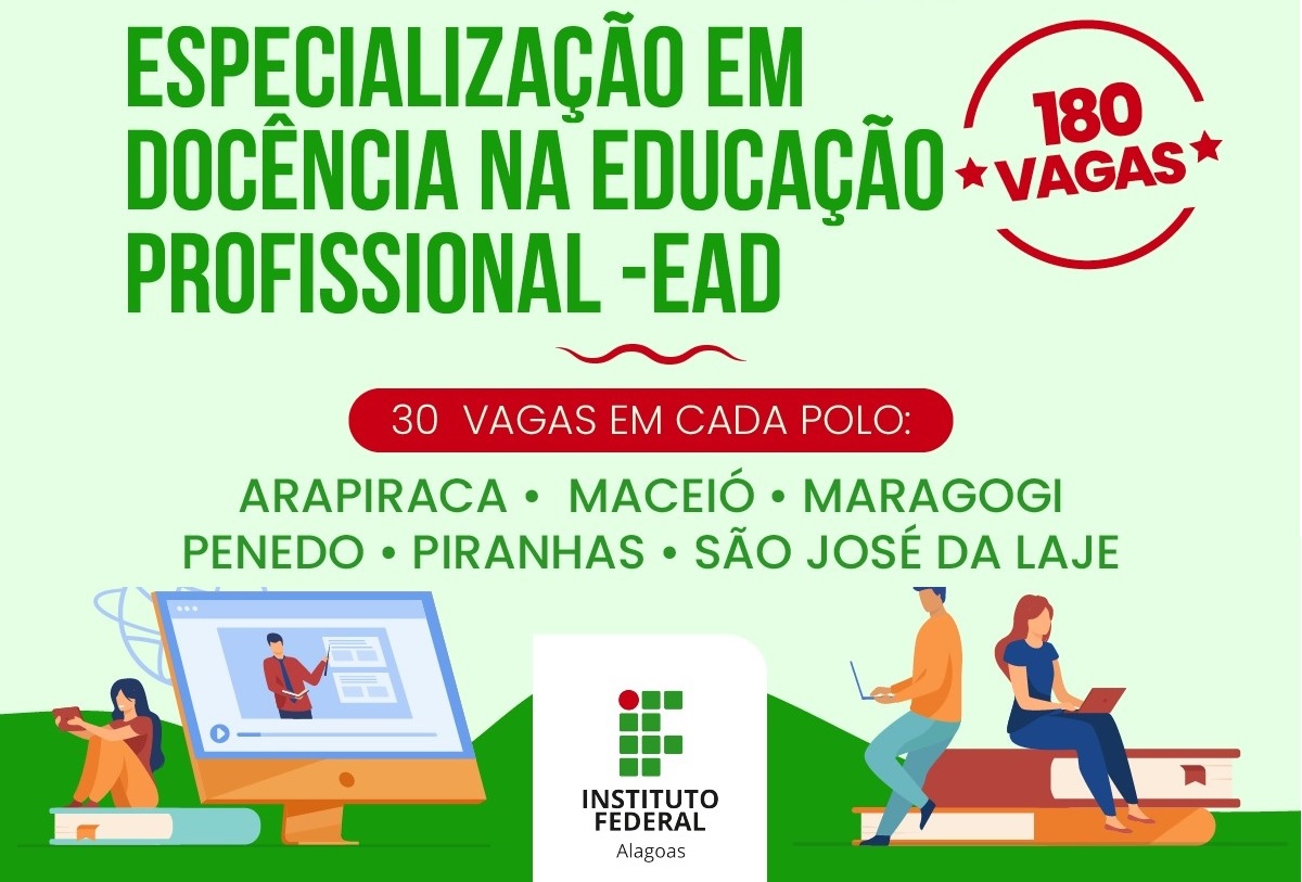 Ifal Arapiraca oferta 30 vagas em especialização em Docência na Educação Profissional