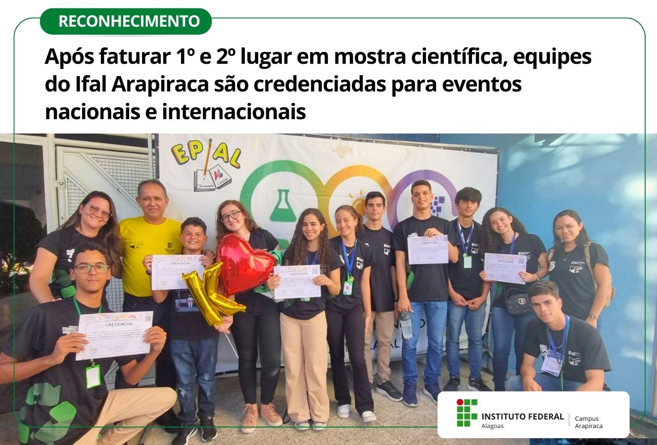 Após faturar 1º e 2º lugar em mostra científica, equipes do Ifal Arapiraca são credenciadas para eventos nacionais e internacionais