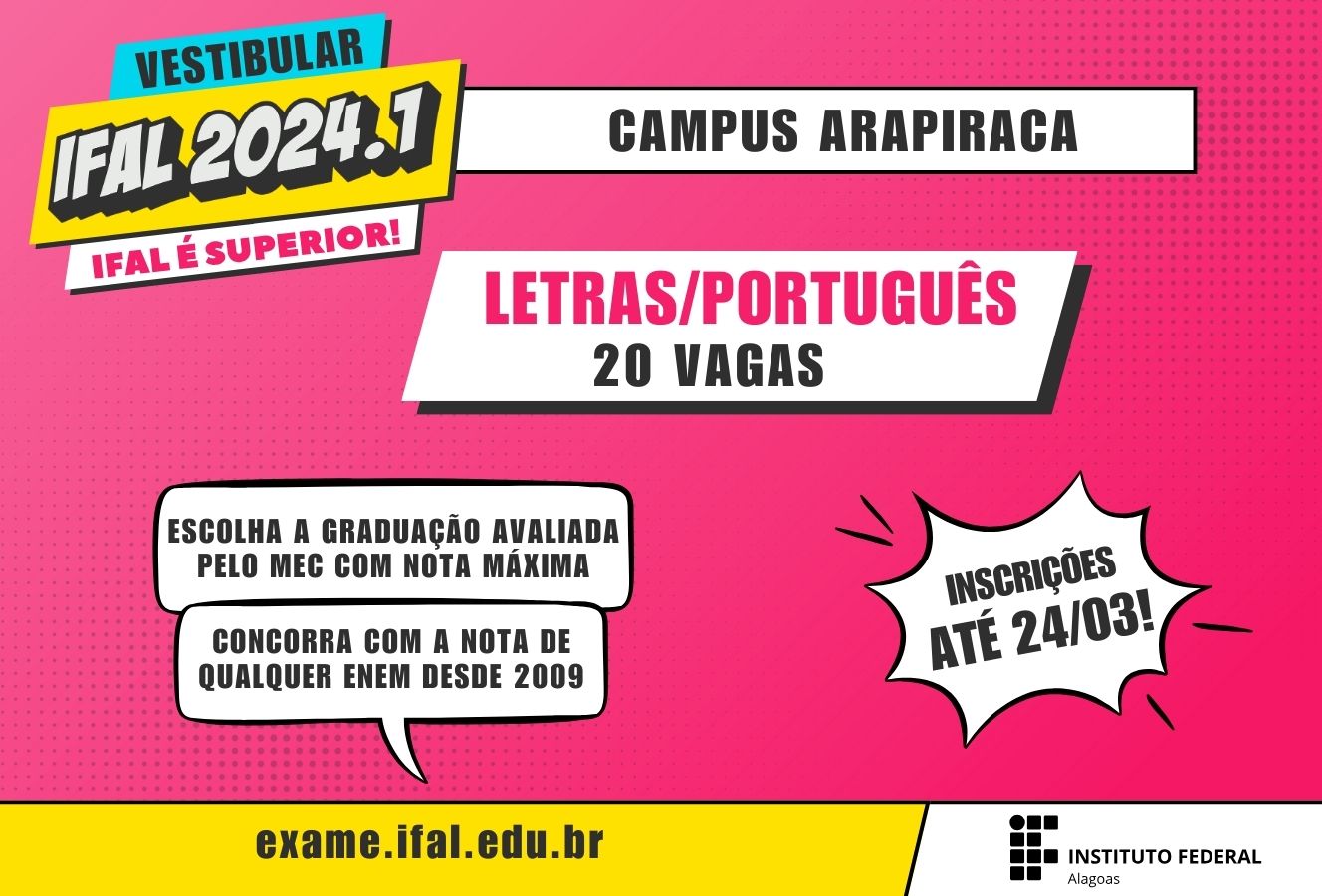 Nova seleção: Ifal Arapiraca abre 20 vagas em licenciatura de Letras/Português
