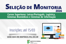 O Instituto Federal de Alagoas - Ifal Campus Arapiraca publicou, nessa quarta-feira (11), o edital de processo seletivo para estudantes interessados/as em atuar na monitoria em disciplinas de cursos superiores da unidade de ensino. A iniciativa busca fortalecer o processo de ensino-aprendizagem na instituição, oportunizando atividades de acompanhamento e suporte acadêmico.