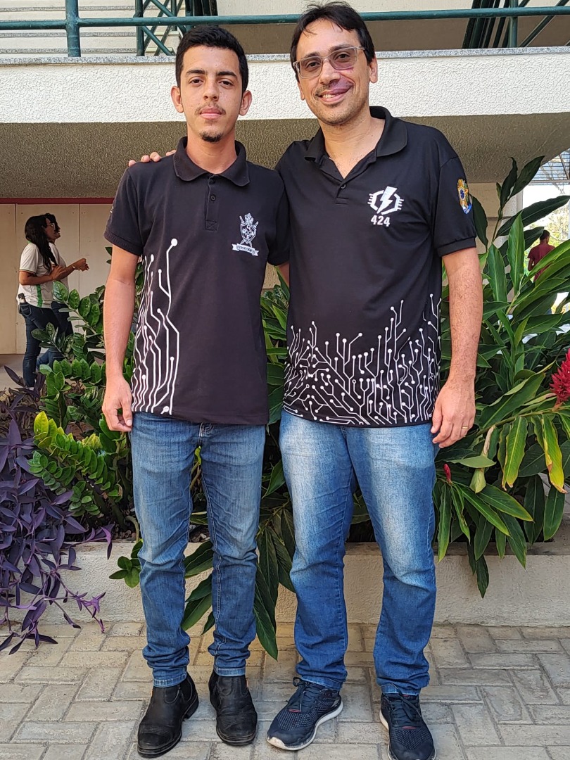 Estudante Luís Felipe (medalha de ouro) e professor Marcos Rocha (docente orientador)