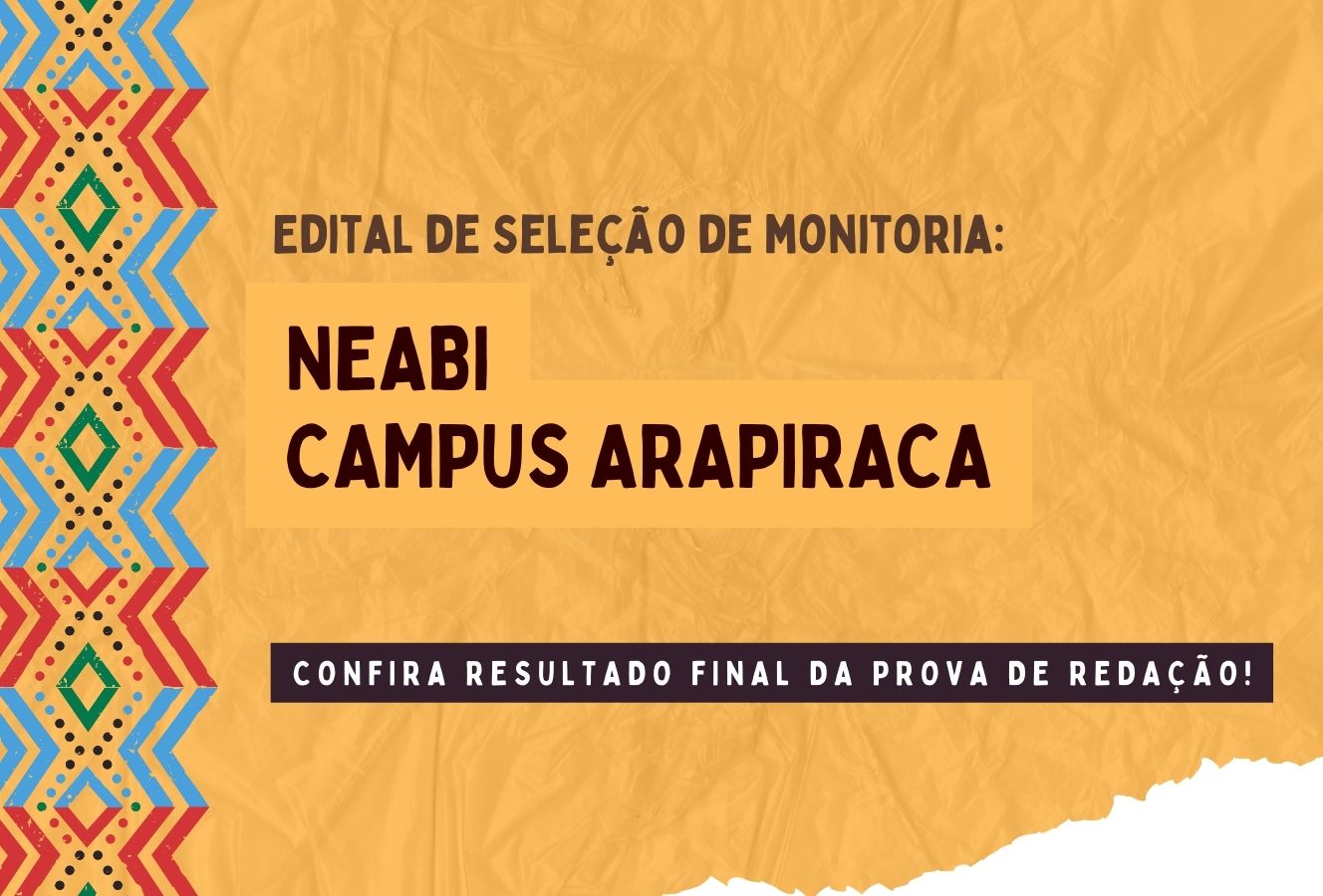 Resultado final das provas de redação para a monitoria do Neabi Arapiraca está disponível