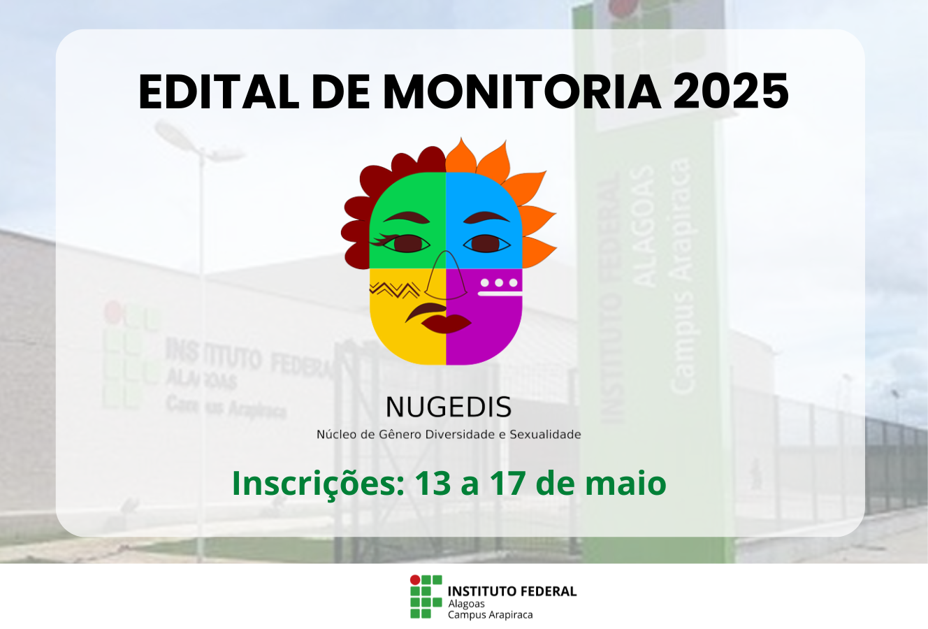 Seleção de monitoria para o Nugedis Arapiraca recebe inscrições de 13 a 17/05
