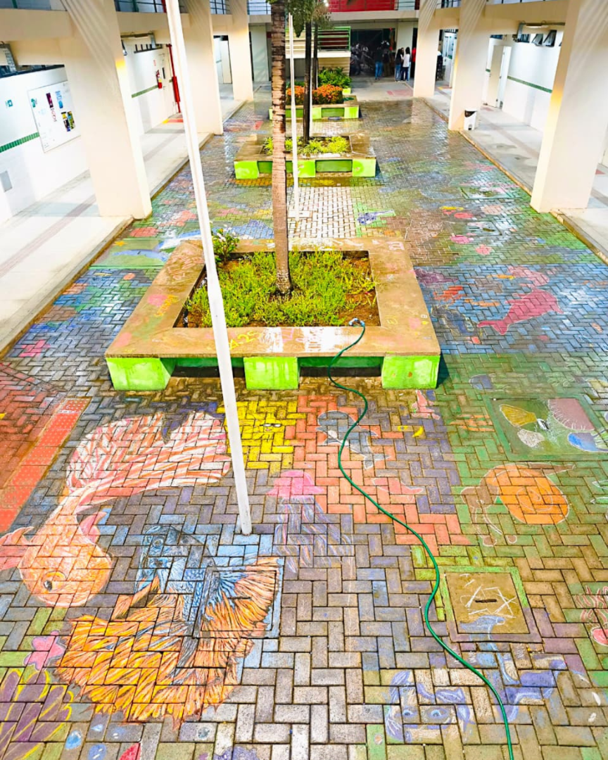Ser Mar na SNCT: arte coletiva transforma o chão do Ifal Arapiraca em "aquário marinho"