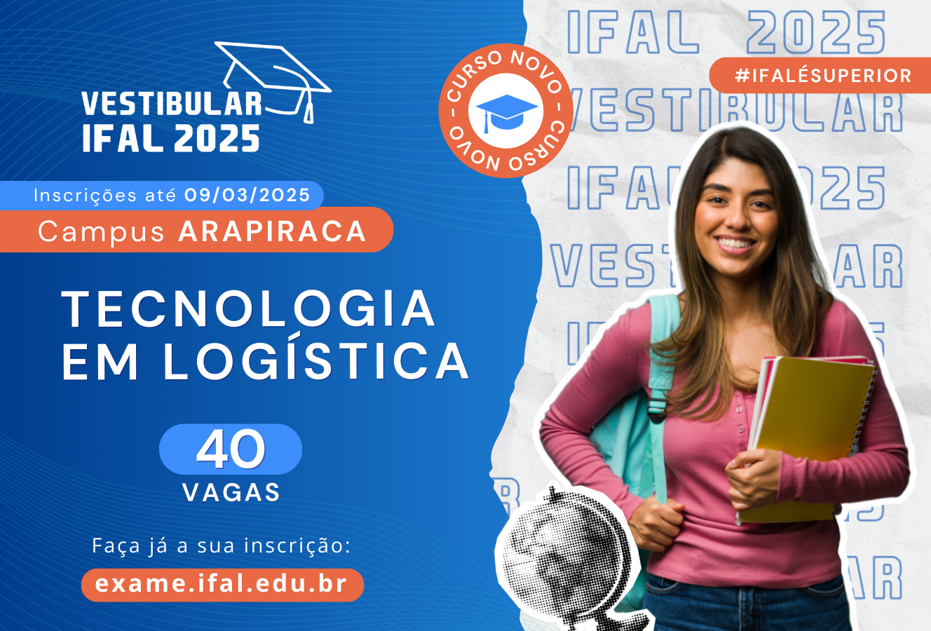 Vestibular 2025: inscrições para graduação de Logística do Ifal Arapiraca encerram neste domingo (9)