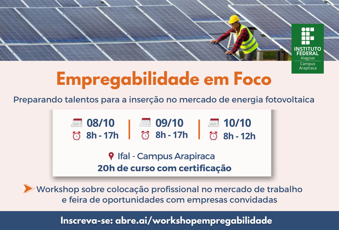Workshop de empregabilidade na área de energia fotovoltaica recebe inscrições