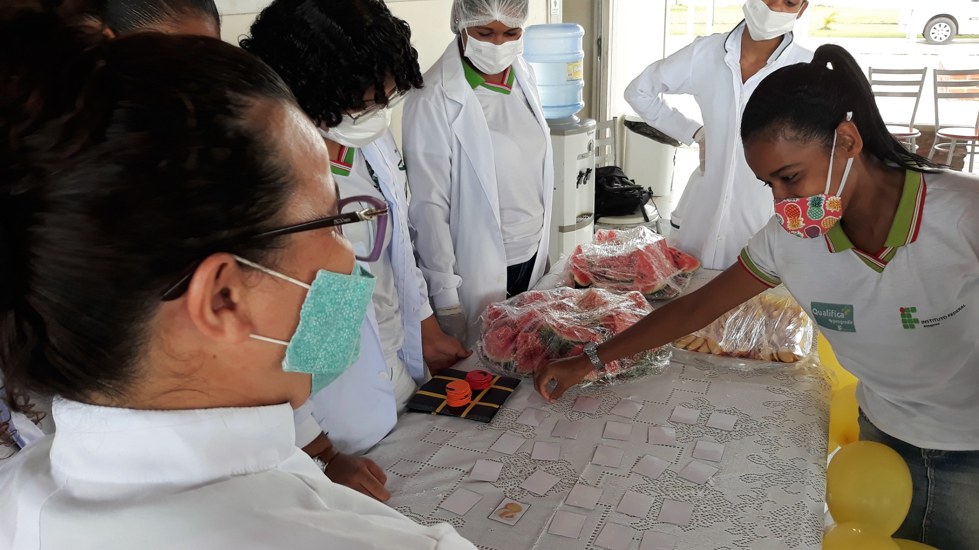 os cuidados com o consumo e higienização dos alimentos foi um dos temas da exposição dos estudantes do primeiro período