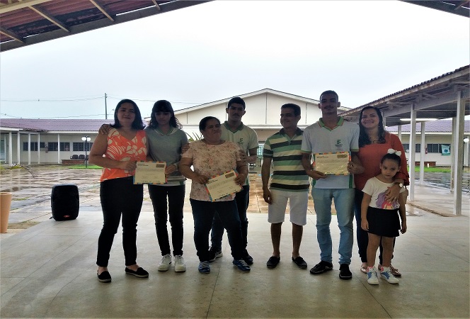 Estudantes com familiares durante a solenidade de entrega dos certificados