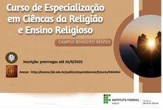 As inscrições para a Especialização em Ciências da Religião e Ensino Religioso foram prorrogadas até o dia 24 de setembro. São ofertadas 30 vagas por meio do sistema de Educação a Distância (EAD) e integral aos sábados.