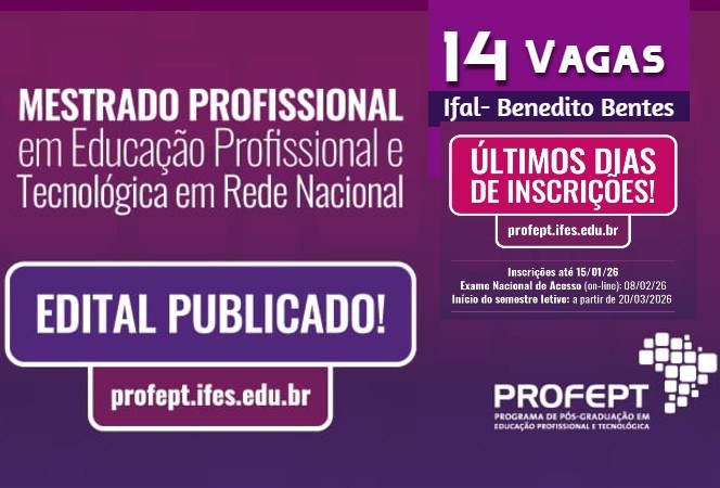Inscrições para o mestrado profissional em EPT serão encerradas no dia 15 de janeiro