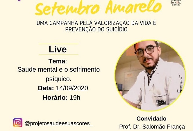 Saúde e suas Cores marca para 2ª feira (14) palestra sobre Saúde Mental e Sofrimento Psíquico