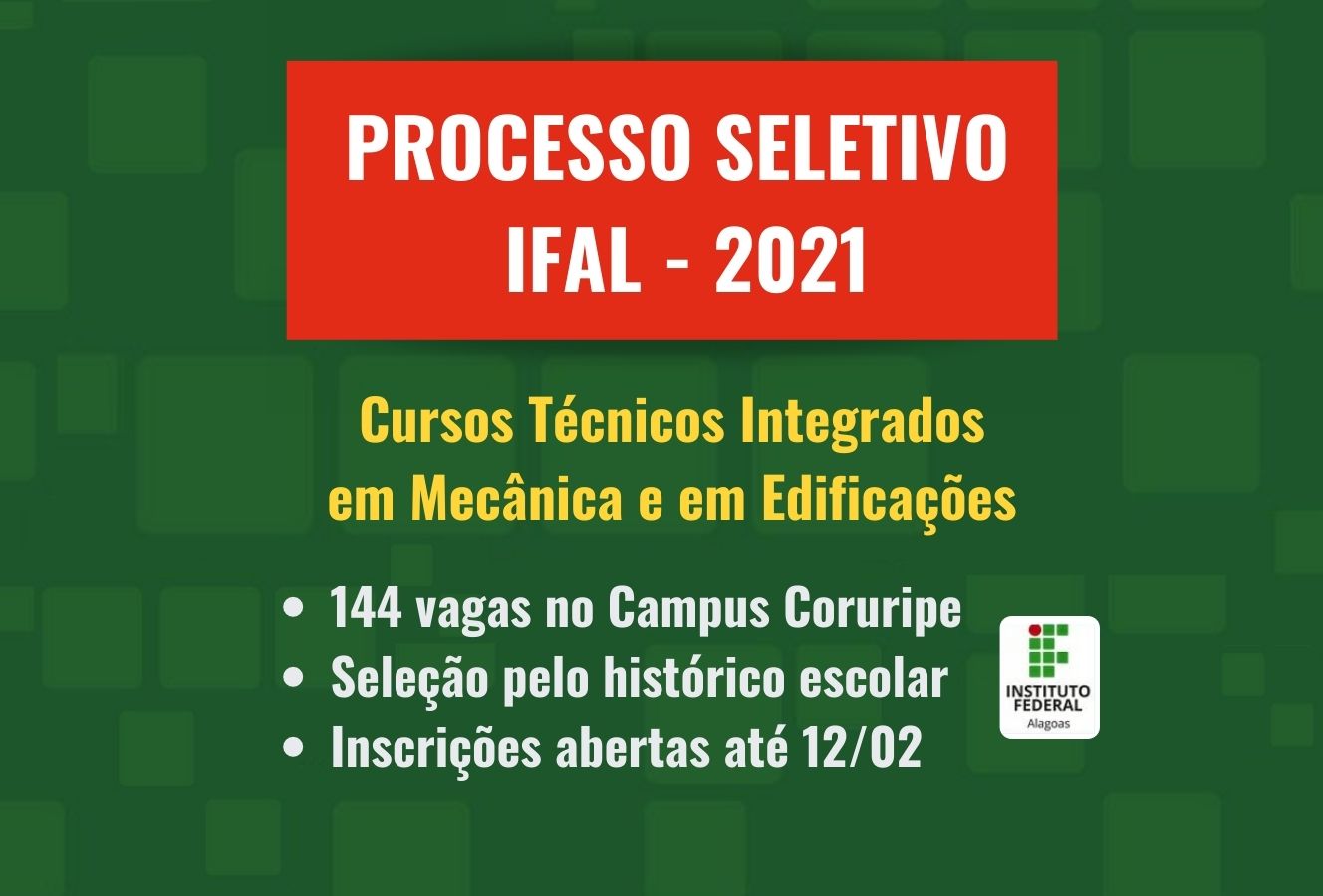 Ifal Coruripe abre inscrições para 144 vagas em cursos técnicos integrados