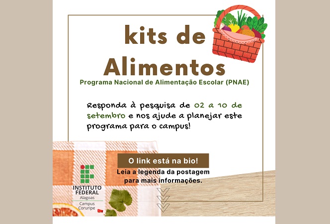 Kits de alimentos serão distribuídos no Campus Coruripe através do PNAE e unidade abre pesquisa sobre o tema