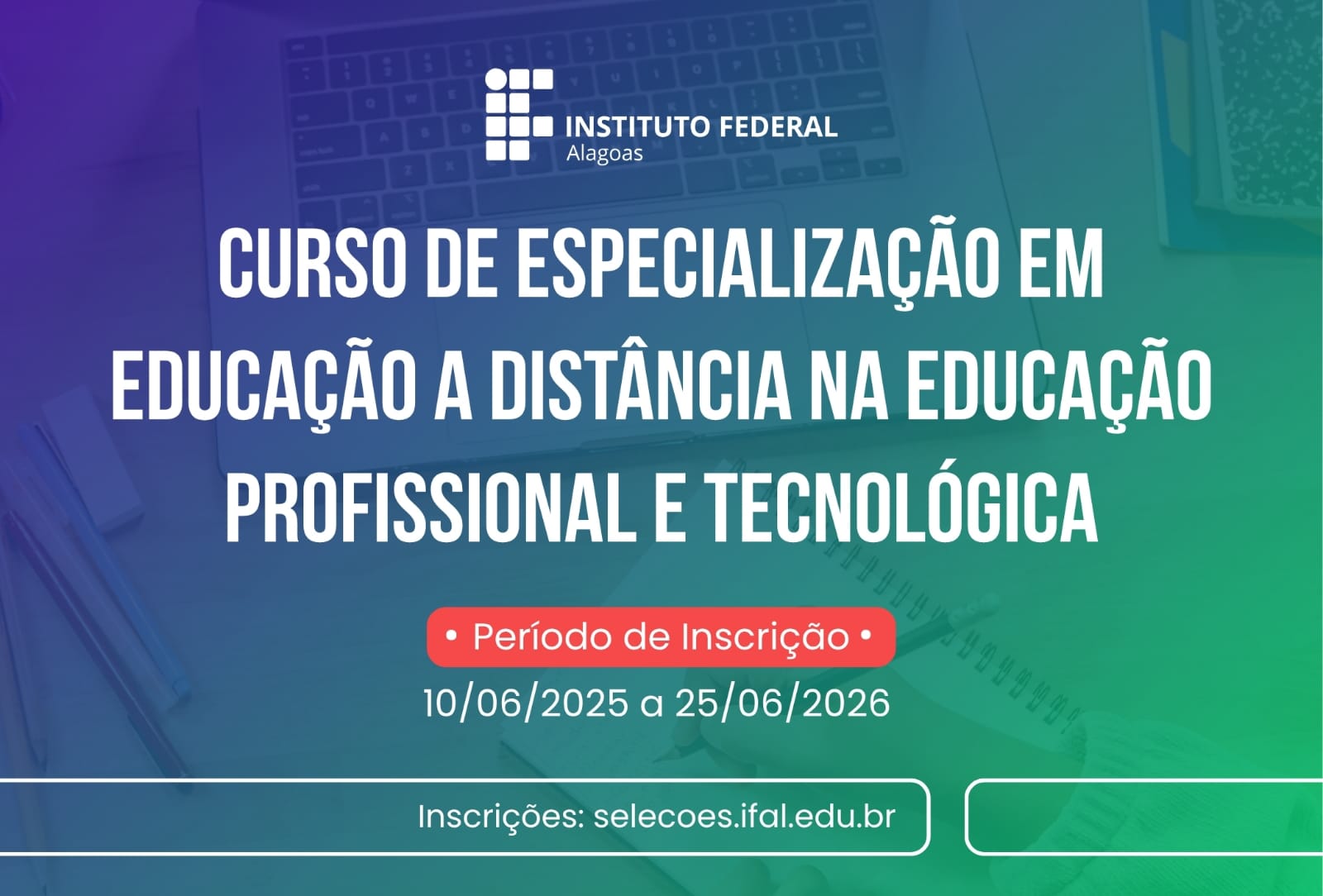 Inscrições abertas para especialização ofertada pelo Ifal