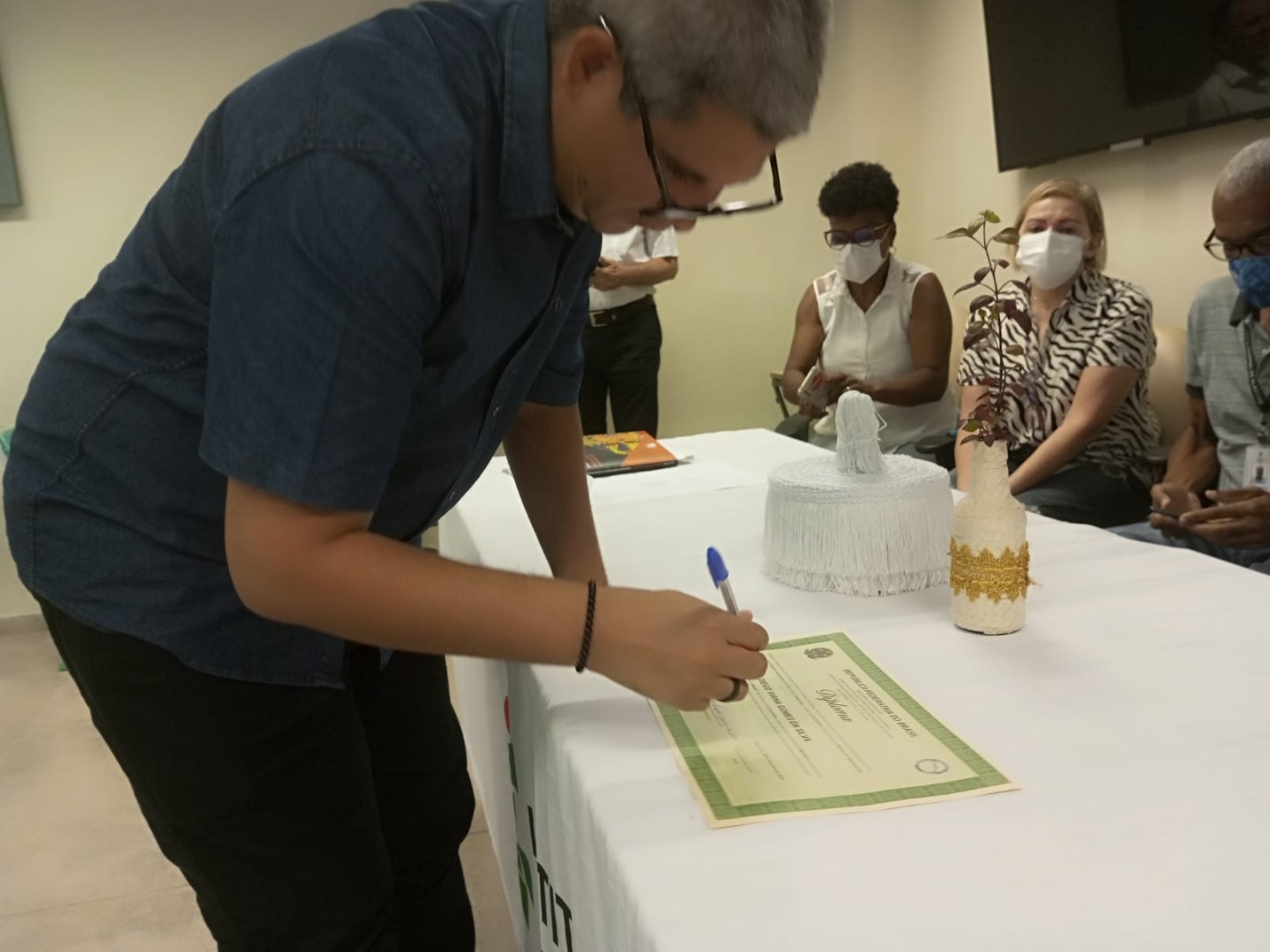 Diego assina o diploma de Técnico em Segurança do Trabalho