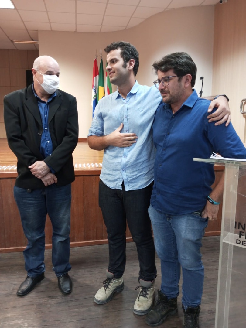 O professor do Bacharelado em Engenharia Civil Vinícius Dantas com seu filho e aluno, Vinícius Dantas Júnior, bacharel em Engenharia Civil