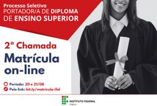 O Ifal Maceió abriu o período de para matrícula on-line em 2ª Chamada do Processo Seletivo para Portadores de Diploma que desejem ingressar em cursos de graduação do campus.