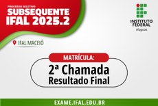 Foi divulgado o resultado final da 2ª Chamada do Processo Seletivo para os cursos Técnicos Subsequentes do Ifal Maceió, após a lista preliminar e análise dos recursos. O resultado refere-se ao Edital nº 32/2025 – DSI/PROEN-IFAL cujas aulas terão início no mês de agosto deste ano.
