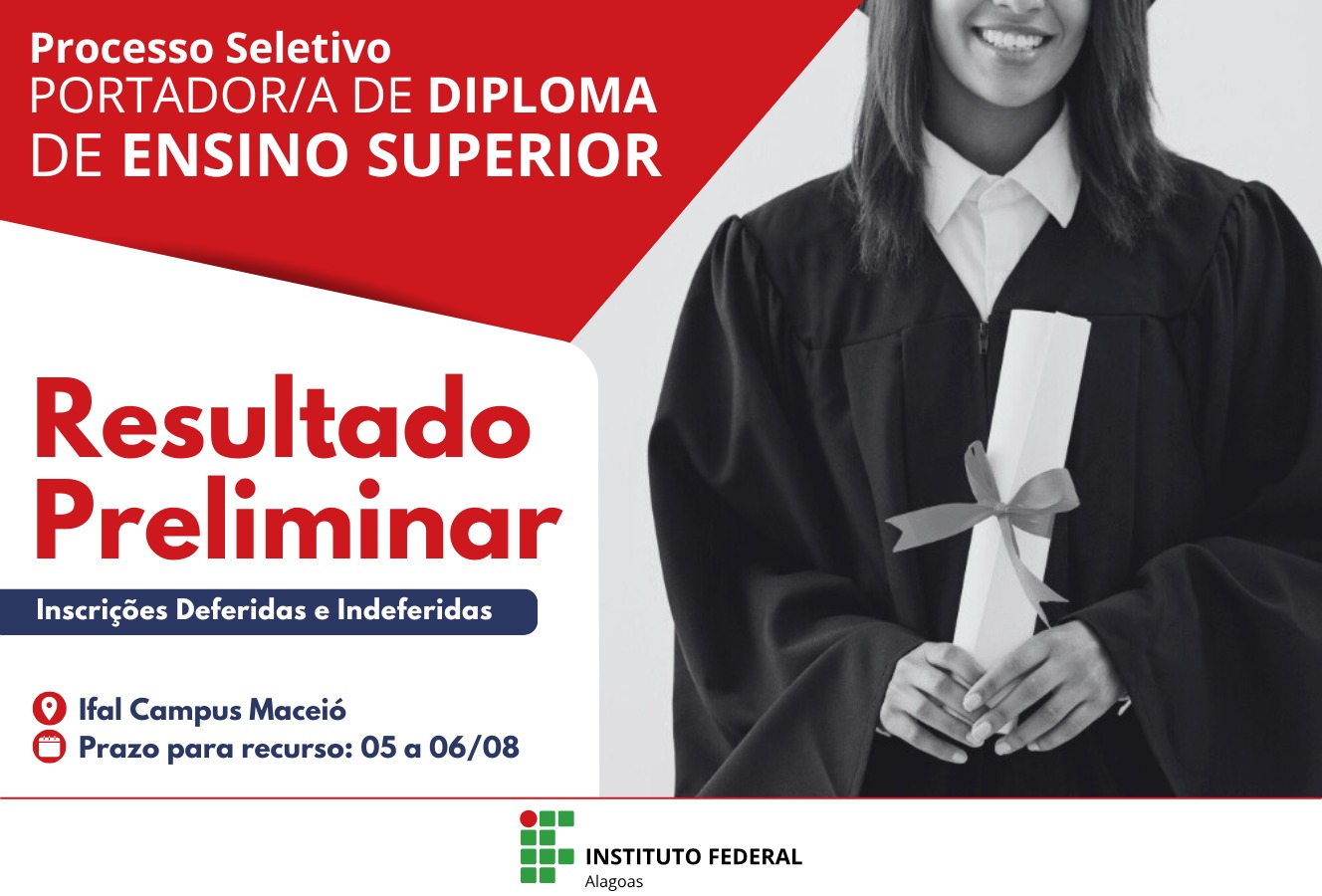 Ifal Maceió publica resultado preliminar para portador de diploma