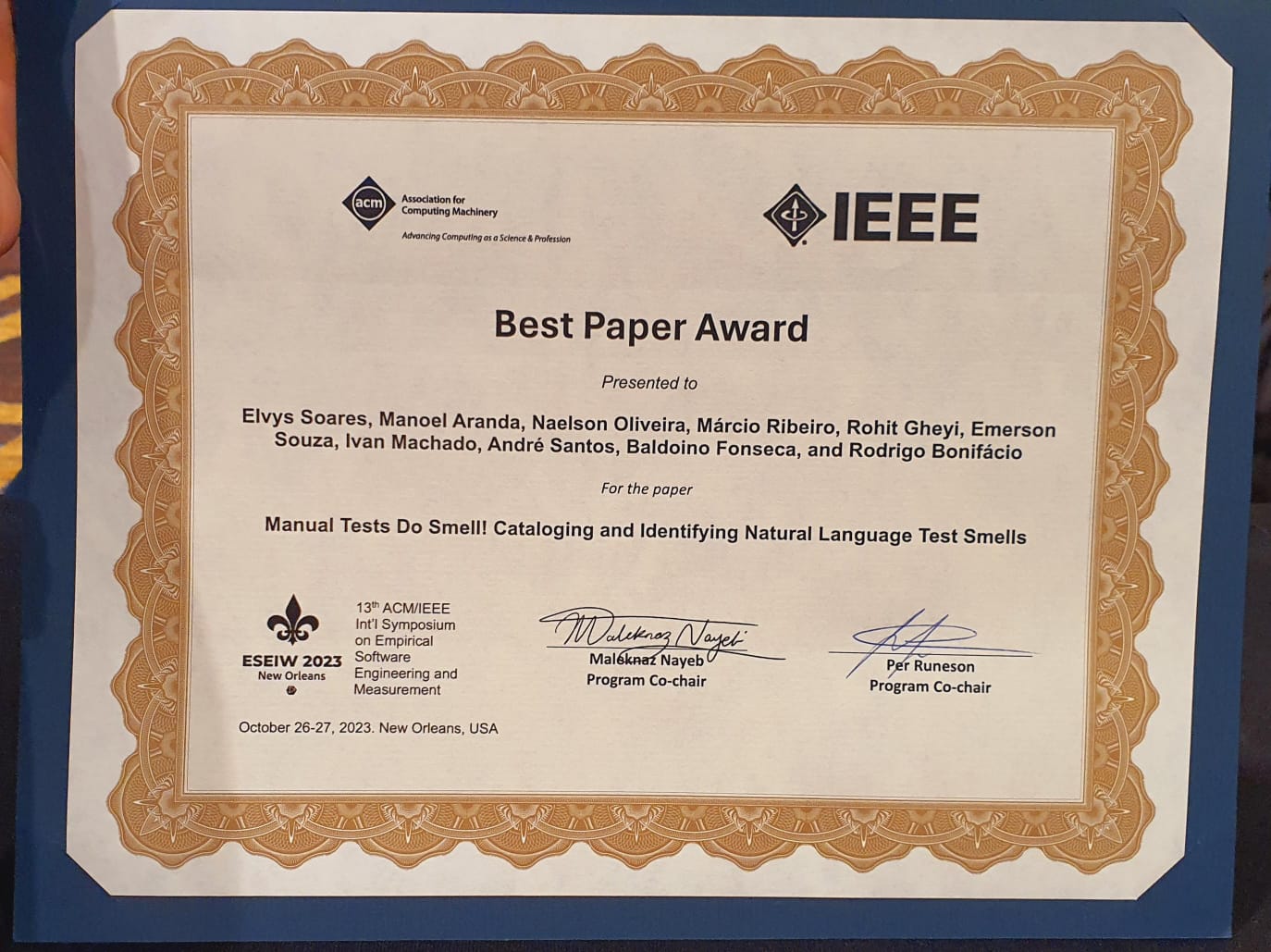 Certificado de Best Paper Award (melhor artigo da conferência)