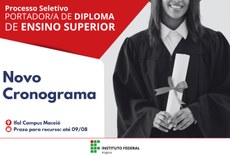 O cronograma do edital para o Processo Seletivo para Portadores de Diploma para ingresso em cursos superiores do Ifal Maceió.