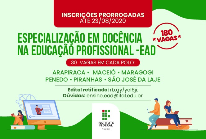 Ifal Maragogi oferta 30 vagas em especialização em docência na educação profissional; inscrições prorrogadas