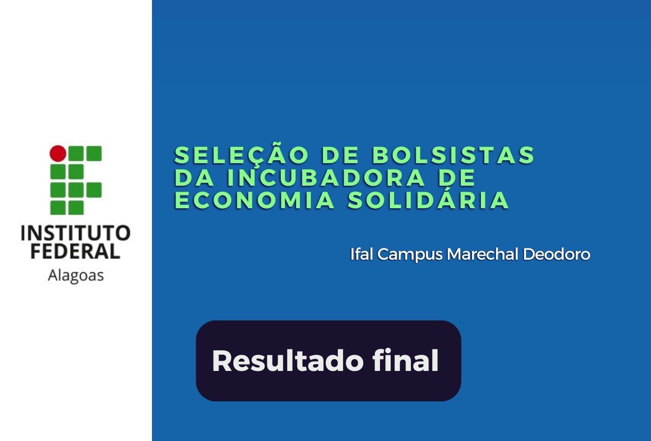 Resultado final de bolsistas para Incubadora de Economia Solidária