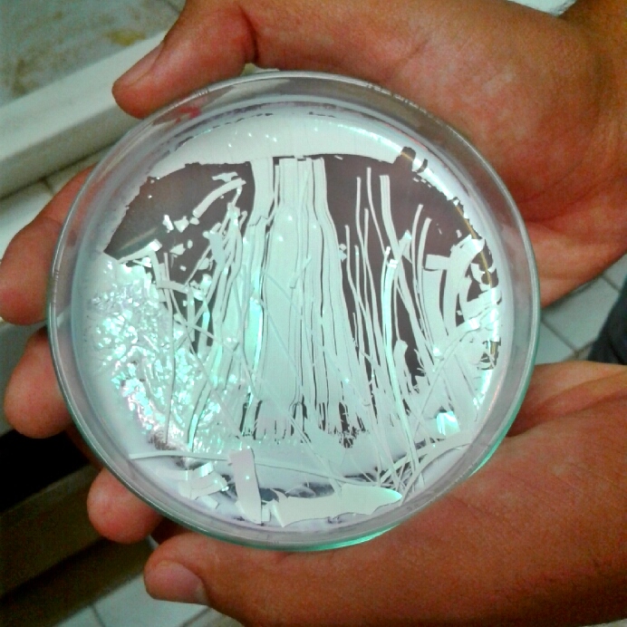 O filme é branco mas possui um aspecto cintilante/furta cor, devido ao fenômeno de espalhamento da luz na síntese.