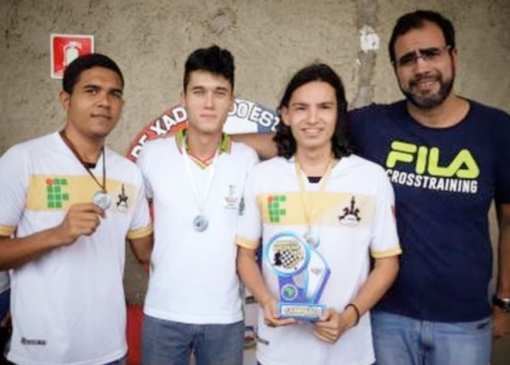 Felipe Mateus (à esquerda), com amigos do Ifal, vencedores de campeonato de xadrez em 2018