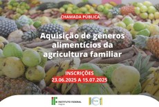 O Instituto Federal de Alagoas campus Murici (Ifal) informa sobre a chamada pública nº 01/2025, com o objetivo de aquisição de gêneros alimentícios da agricultura familiar e do empreendedor familiar rural.