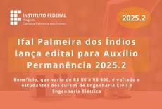 O Instituto Federal de Alagoas (Ifal) – Campus Palmeira dos Índios publicou, nesta quinta-feira (4), o Edital nº 01/2025, que regulamenta o processo seletivo para o Programa Auxílio Permanência. O benefício é destinado a estudantes regularmente matriculados nos cursos de Engenharia Civil e Engenharia Elétrica, ingressantes no semestre letivo 2025.2.