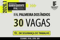 O Instituto Federal de Alagoas (Ifal) publicou o Edital nº 63/2025 que anuncia a abertura do processo seletivo para o Curso Técnico Subsequente em Segurança do Trabalho no Campus Palmeira dos Índios. Ao todo, são oferecidas 30 vagas gratuitas para ingresso no primeiro semestre letivo de 2026.