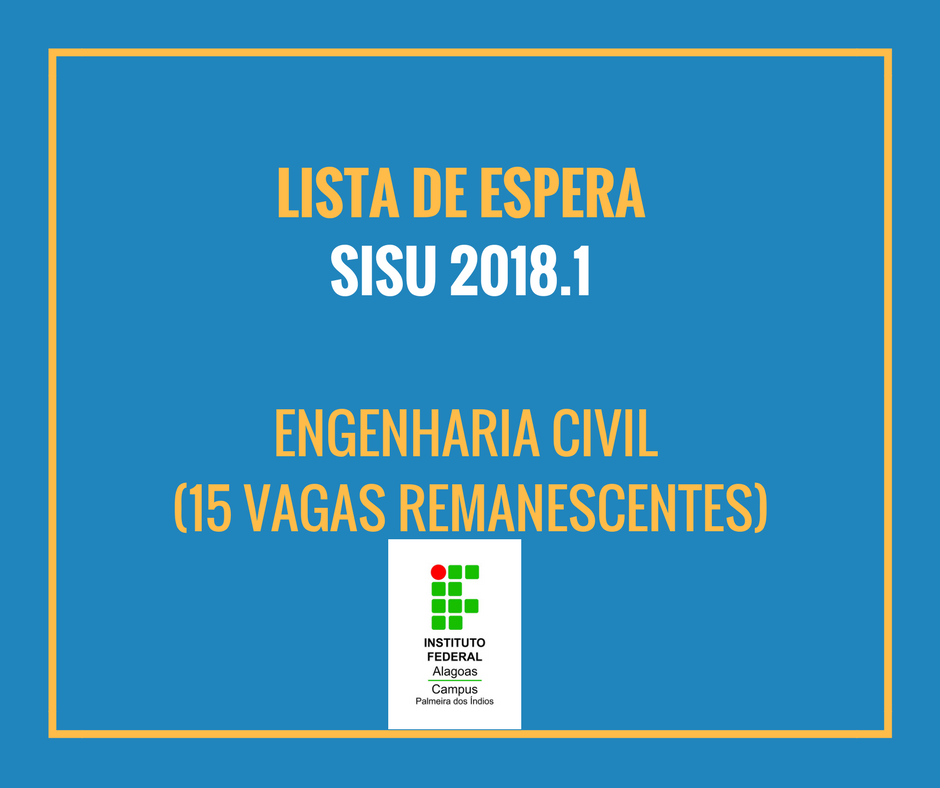 Ifal divulga lista de espera do Sisu 2018.1; Palmeira dos Índios tem 15 vagas remanescentes