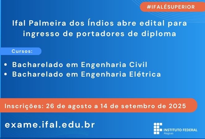 Ifal Palmeira dos Índios abre edital para ingresso de portadores de diploma