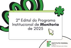 O Instituto Federal de Alagoas (Ifal) – Campus Palmeira dos Índios publicou o 2º Edital do Programa Institucional de Monitoria de 2025, oferecendo vagas para estudantes dos cursos técnicos e superiores que desejam atuar como monitores em diversas áreas. As inscrições estão abertas até o dia 20 de junho e devem ser feitas de forma on-line.