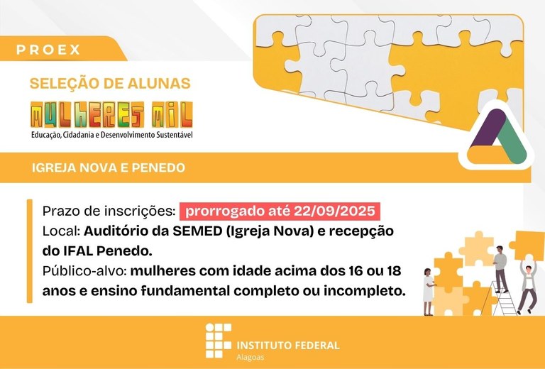 Prorrogadas inscrições para cursos do Programa Mulheres Mil em Igreja Nova e Penedo