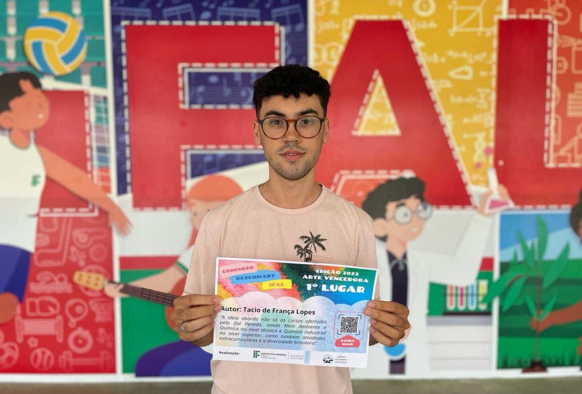 Tacio de França Lopes, aluno do bacharelado em Química Industrial e primeiro colocado no concurso.